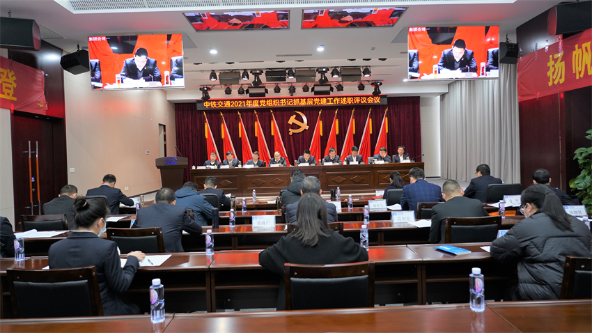 结合当前常态化疫情防控要求,2月16日下午,中铁交通以“现场+视频”相结合的方式,组织召开了2021年度党组织书记抓基层党建工作述职评议会议。集团公司党委书记、董事长谭世俊主持会议并讲话,集团公司党委副书记、总经理李建光及全体领导班子成员参加会议。