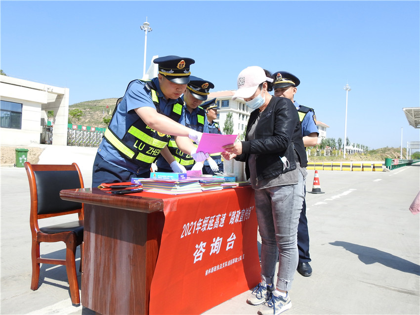 绥延项目路政大队紧密围绕“学党史、当先锋、护公路、优服务”主题,积极落实“我为群众办实事”实践活动,走进沿线村镇,采取设立展板、咨询台等形式,现场接受沿线群众的咨询投诉,面对面宣传公路法律法规,发放路政安全宣传资料,积极争取沿线群众对高速公路路政执法工作的理解和支持,了解损坏刺丝网、隔离栅以及随意穿行高速公路的危害性,营造全社会共治的良好氛围。