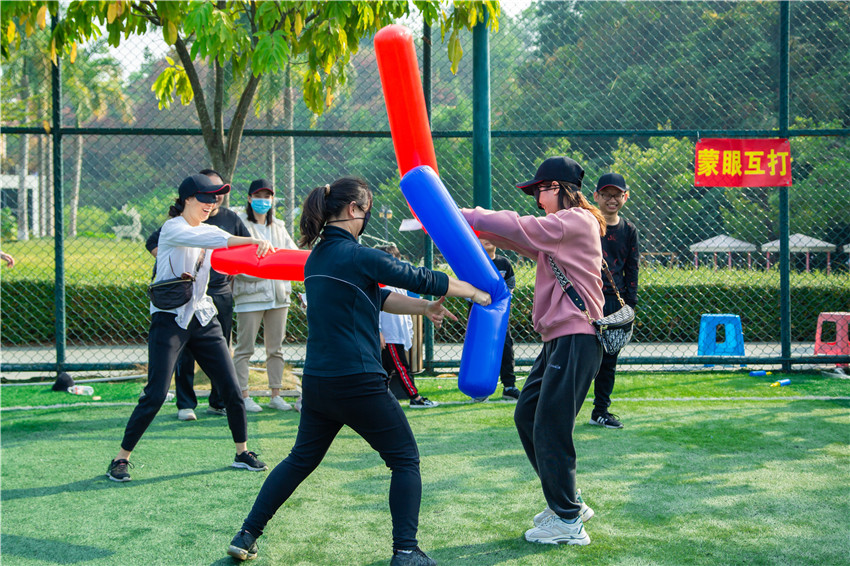 团体运动会结束后,职工及家属还参加了投壶、抖球、沙包投掷、蒙眼互打、光盘拔河等趣味游园活动。